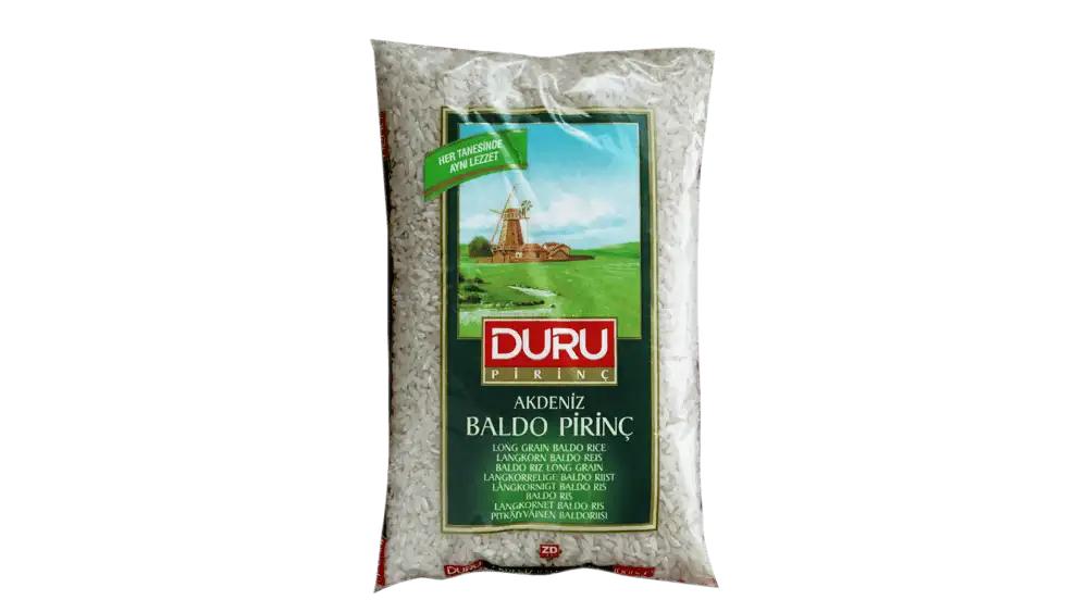Wysokiej jakości ryż baldo, popularny w kuchni tureckiej, idealny do pilav (pilavlık), dolmy i dań jednogarnkowych. [En] High-quality baldo rice, popular in Turkish cuisine, perfect for pilav, dolma, and one-pot dishes.